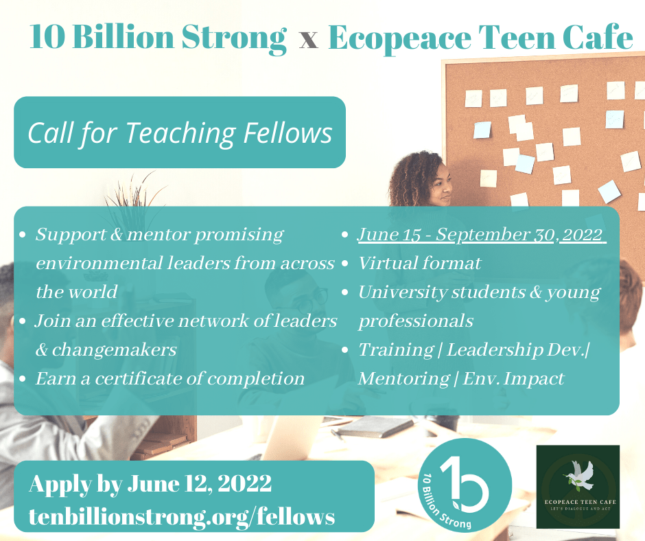 Ecopeace Teen Cafe is partnering with 10 Billion Strong to implement Green Leaders Academy with a special focus on the Indian context. 10 Billion Strong is an environmental leadership organisation focused on how individuals can increase their capacity to lead themselves and others to improve our environment. Their mission is to design and implement environmental education programs, with a strong focus on leadership and civic engagement, to support the growth and development that will allow leaders to create change in their communities.