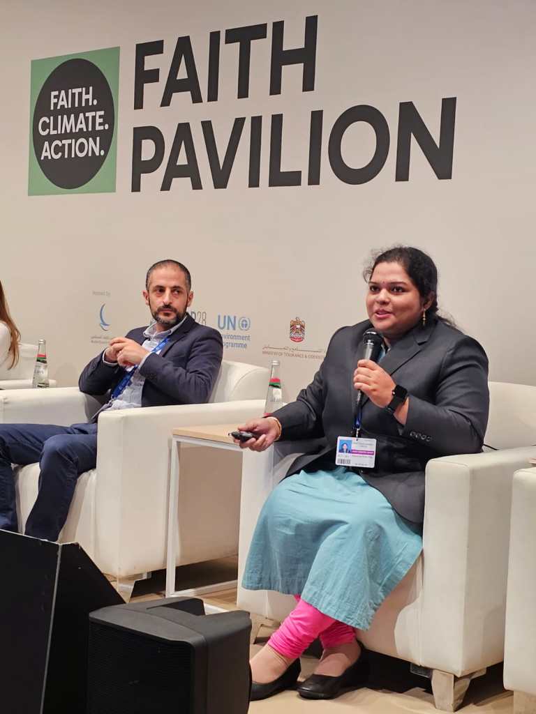 Our founder Ms Greshma Pious Raju spoke at the panel discussion on Religion, Youth and Environment: A Global Response through Local Action at Faith Pavilion of COP 28 UAE on December 8th. She shared her experience of working with faith communities for climate actions. Earlier this year, Ecopeace organised and facilitated training programs and tree-planting events for young people. She mentioned the process of hosting such events and how those events encourage young people to take action.